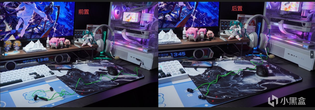 右邊是用主板的後置接口,線材已經過短,不能正常坐姿佩戴)
