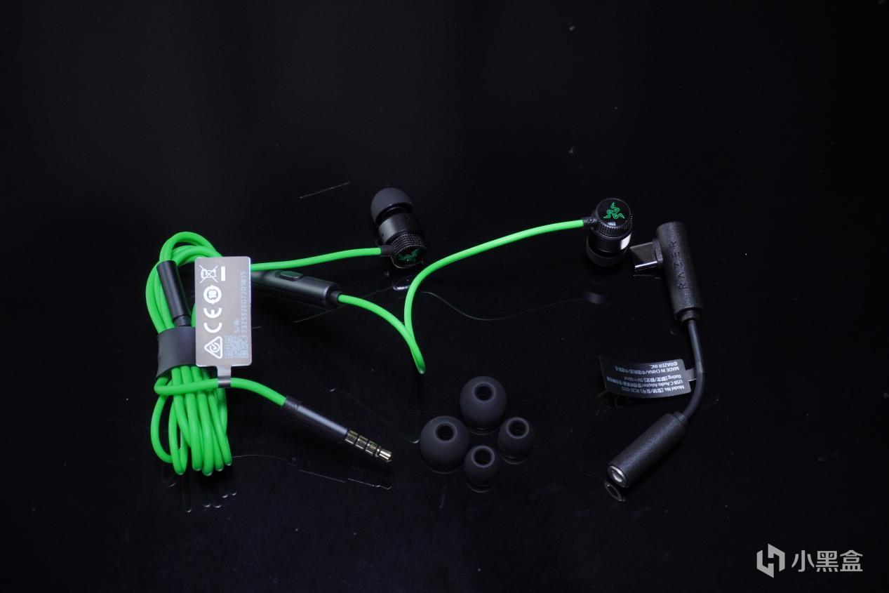 再來說說耳機的外觀方面,耳機做的是雷蛇經典的黑綠配色,配件除了上面說到贈送了三幅耳套以外,還有貼紙和使用指南。