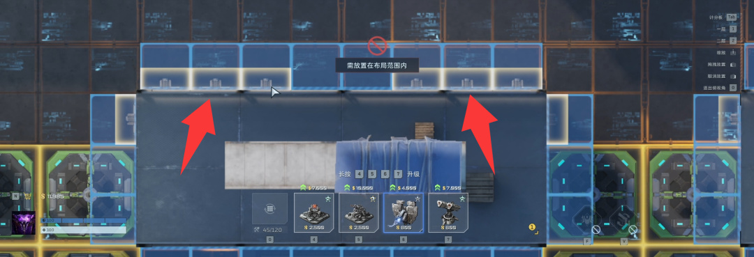 外围角落侧面放上两个自修和四个破坏者,位置在这里。