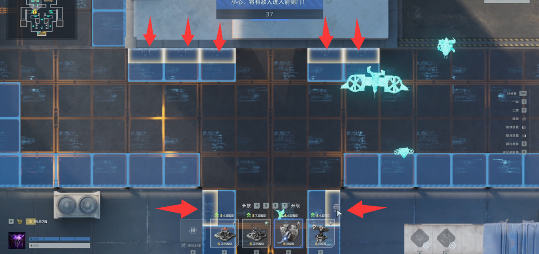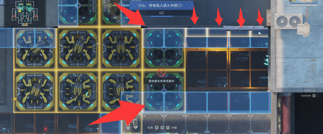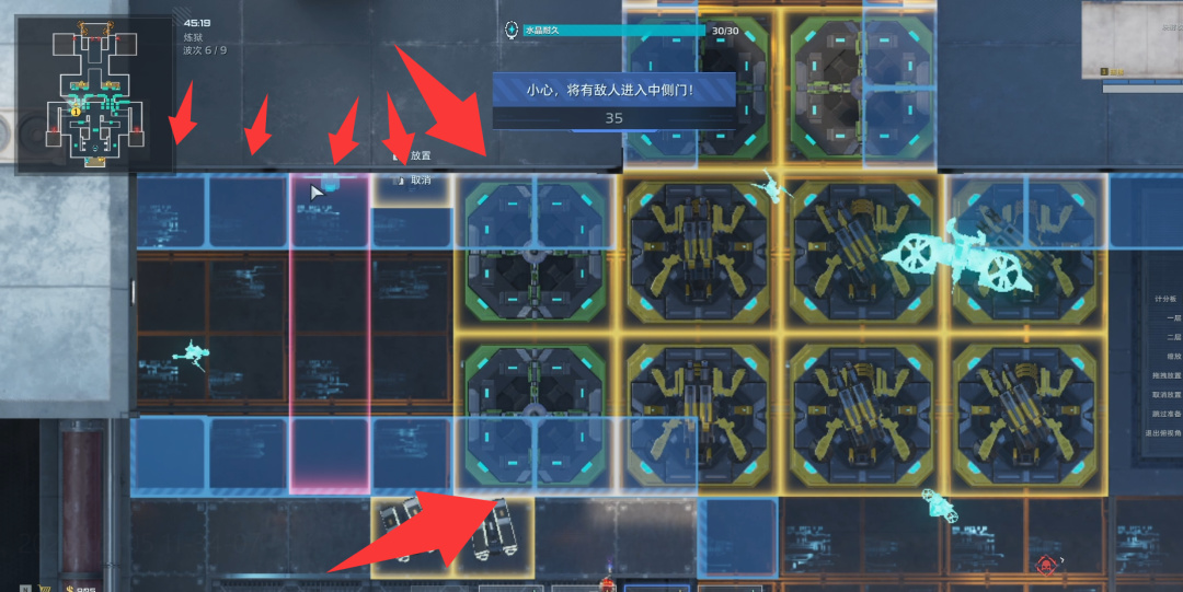 你有本事堵门最好,但是稳妥起见把地面炮塔全部删除。这个操作会的吧,往上一拖就行了,删除后再拉回来。