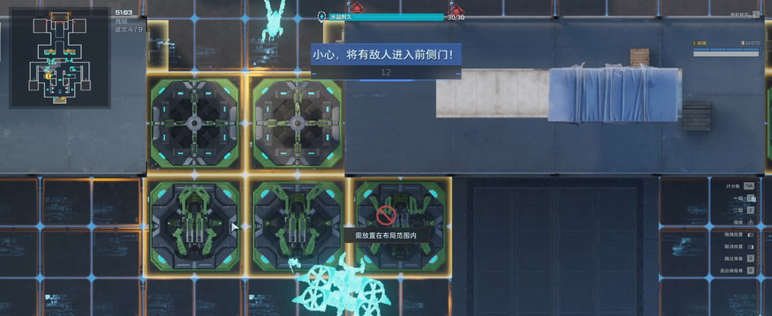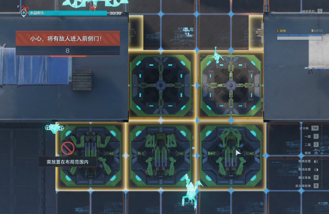 侧面开始来人了,在侧面补上两个自修,四个电墙。