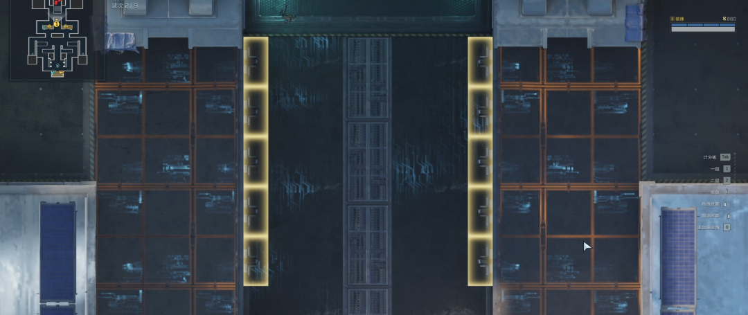 在上述五个电墙后面,对称放电墙+自修+破坏者。