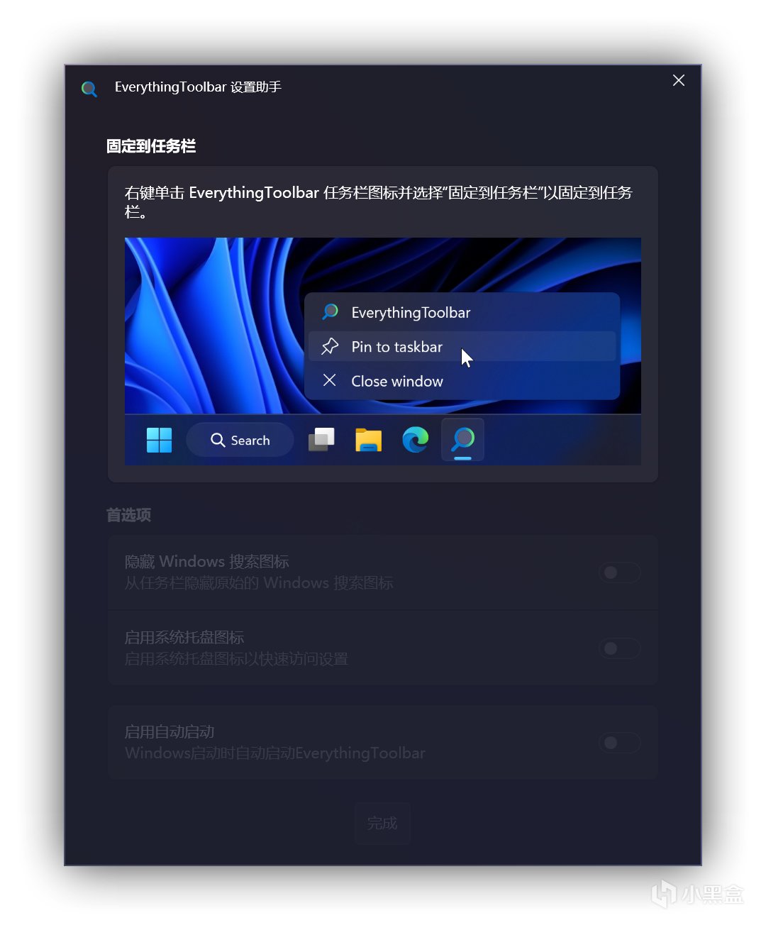 前置準備:確保已安裝Everything ≥ 1.4.1已安裝並運行(注意: 不支持Everything的Lite版本),這是EverythingToolbar的必要依賴