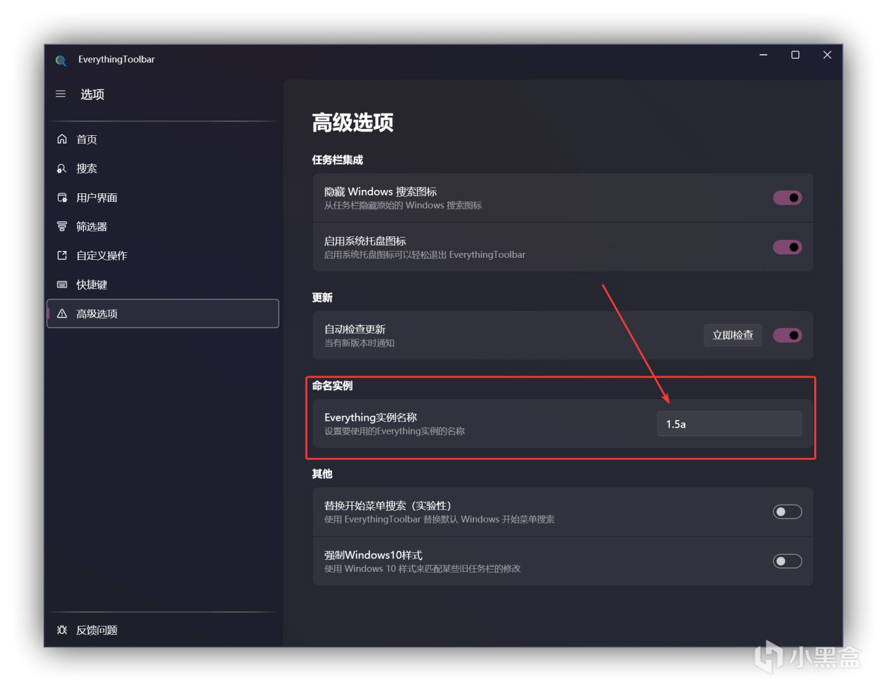 重要提示: 對於Everything 1.5a用戶,請在EverythingToolbar的高級設置中將實例名稱設置爲1.5a(設置 → 高級 → Everything實例名稱)。