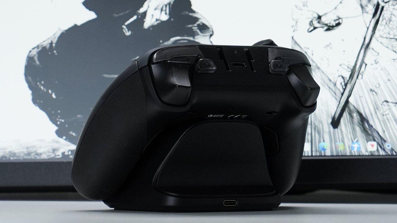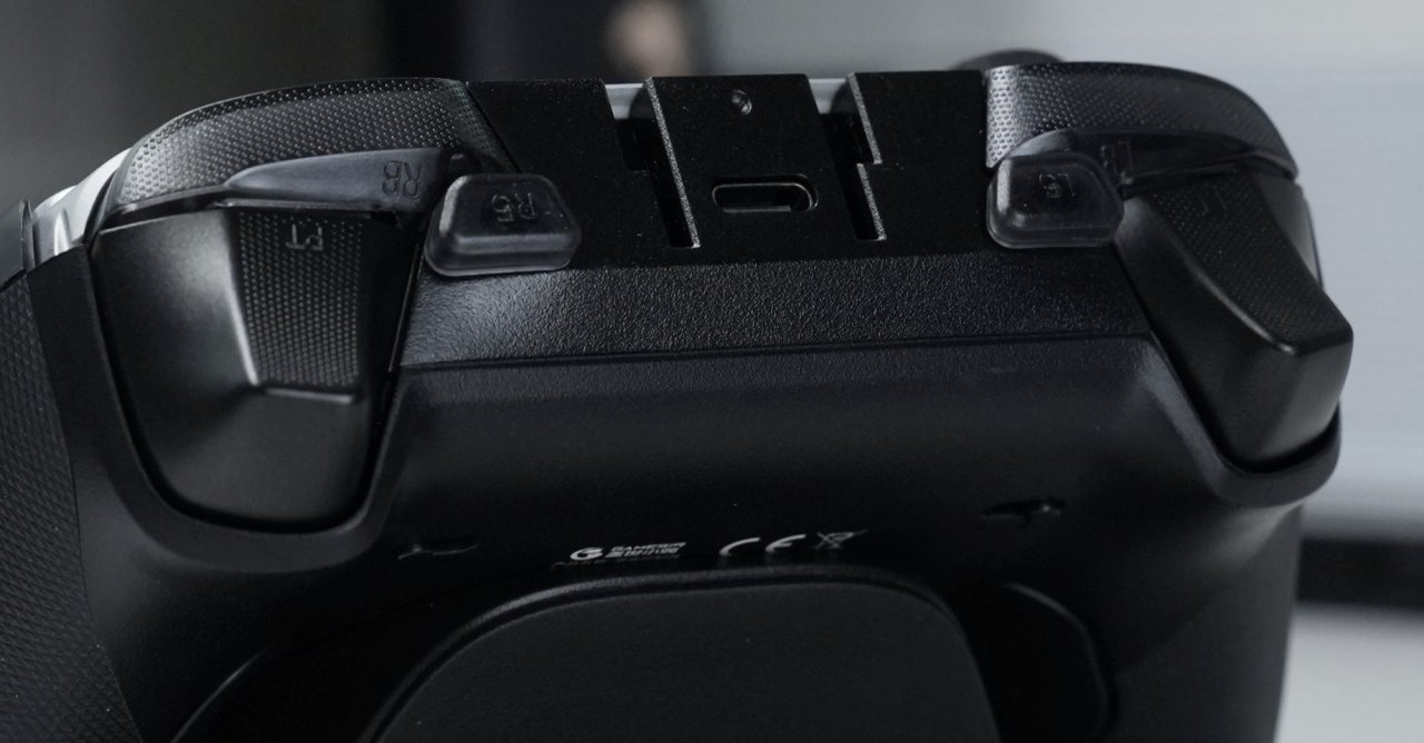 顶部就是常规的肩键与扳机键,不过如果你观察仔细,是可以发现顶部似乎还有两个小小的拓展按键。这个设计我认为蛮不错的,对于一些需要按键较多的游戏来说无疑是更加方便的,并且还支持自定义宏。