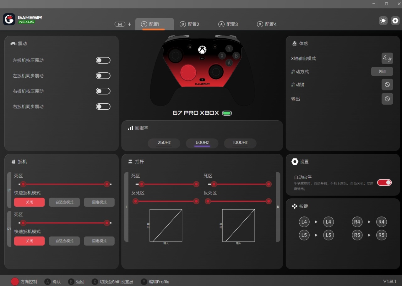 当然手柄最重要的硬件有了,软件肯定也不能差啦。驱动方面大家在微软商店搜索GameSir Nexus 2.0就行。里面的功能很齐全。你可以在里面自由调节回报率,250/500/1000看你自己选择