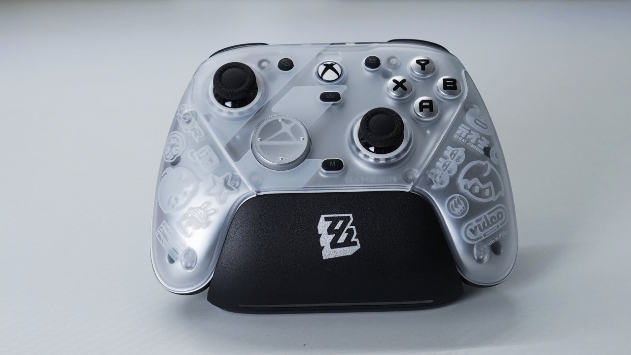 底座方面还支持智能启停,拿起手柄会自动开机,十分方便。不玩了就放底座上,会自动关机充电,并且底座的灯光也会亮启。大家日常可以当个桌搭使用,颜值还是蛮高的
