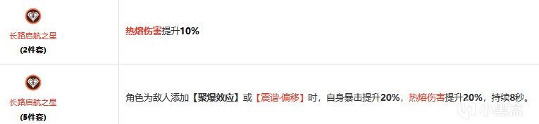 新声骸套装长路启航之星,提升热熔伤害,触发偏谐相关机制时提升20%暴击率和热熔伤害,43311,4C辛吉勒姆,主词条暴击爆伤,C3一攻一属,C1大攻击,充能推荐120%。
