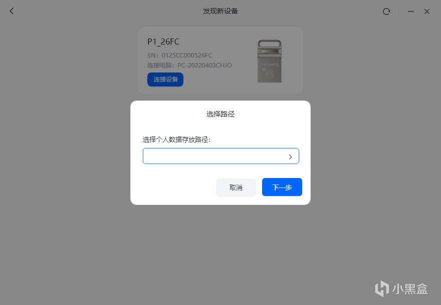 安装完成后注册账号,然后点击添加Nas U盘,再选择樊想P1,点连接设备,将个人数据存放路径设置到你想用来存私人数据的硬盘里。