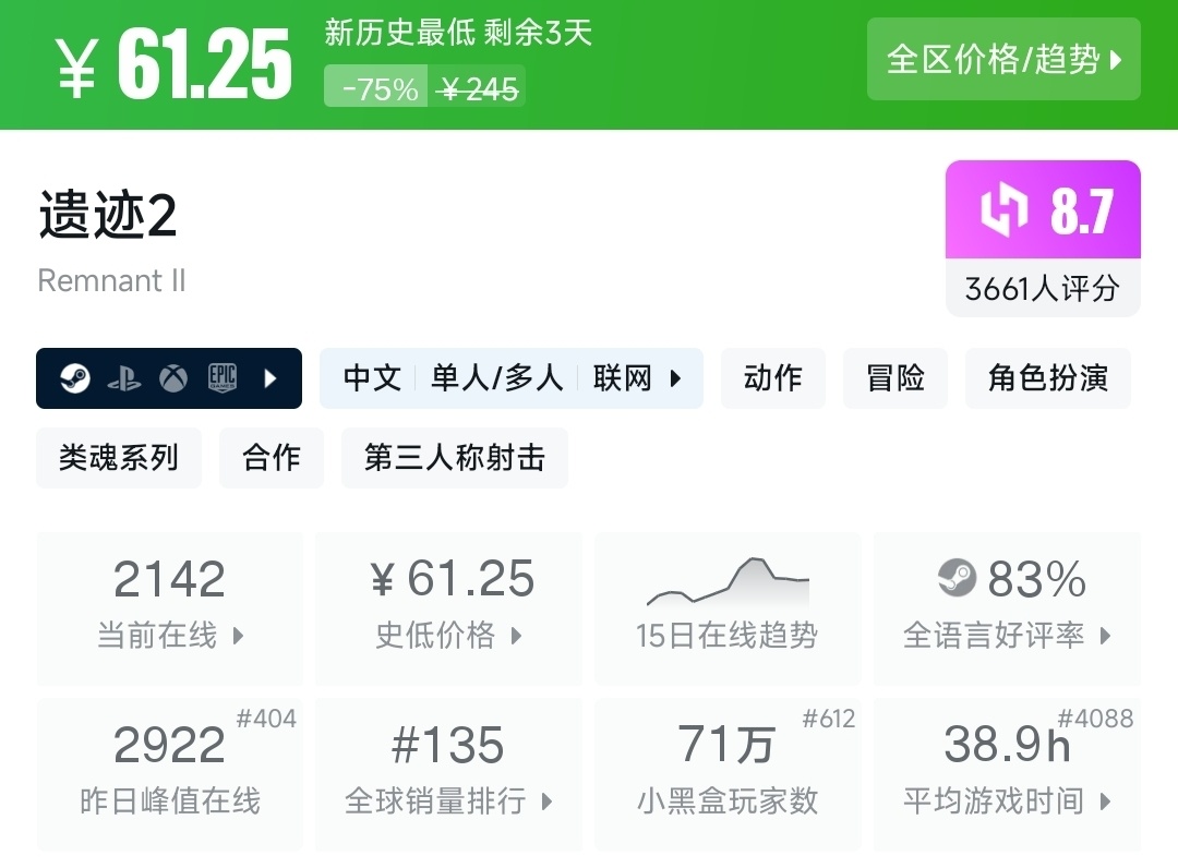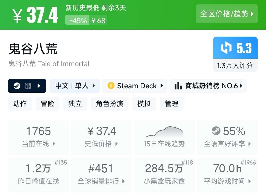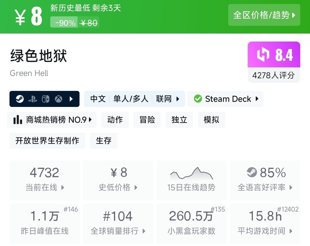 大家好!今天的Steam折扣已經開啓,從3A大作到獨立神作應有盡有,點贊收藏開啓今天的史低/超史低佳作推薦吧~