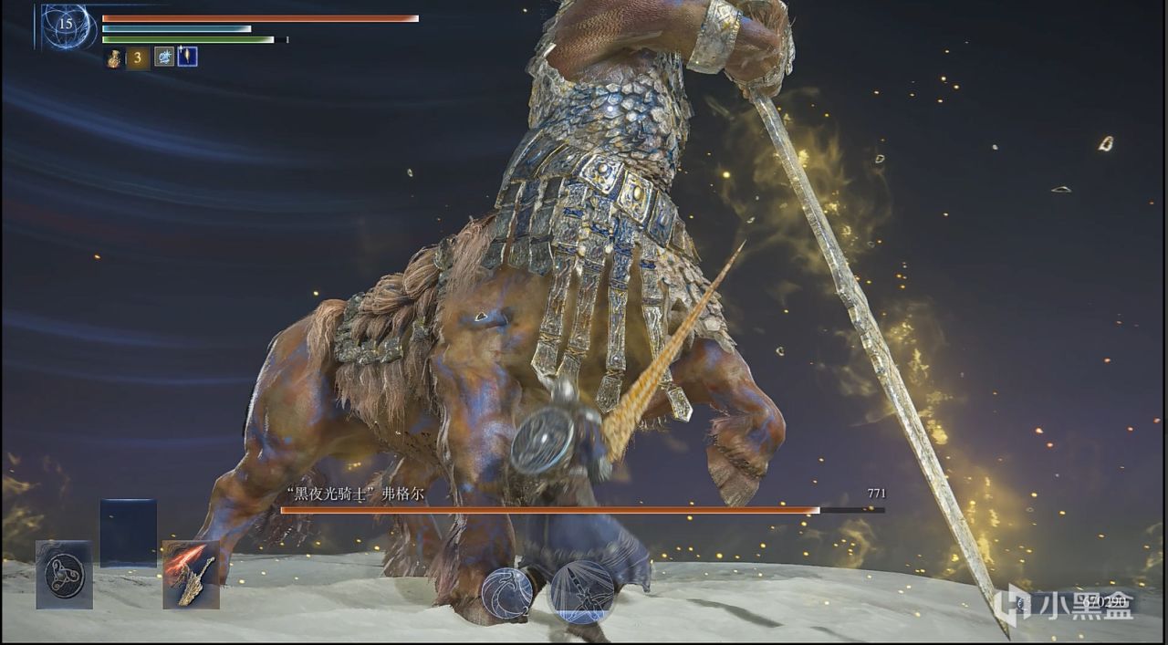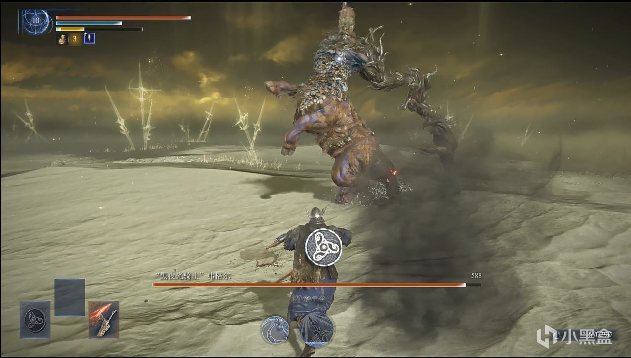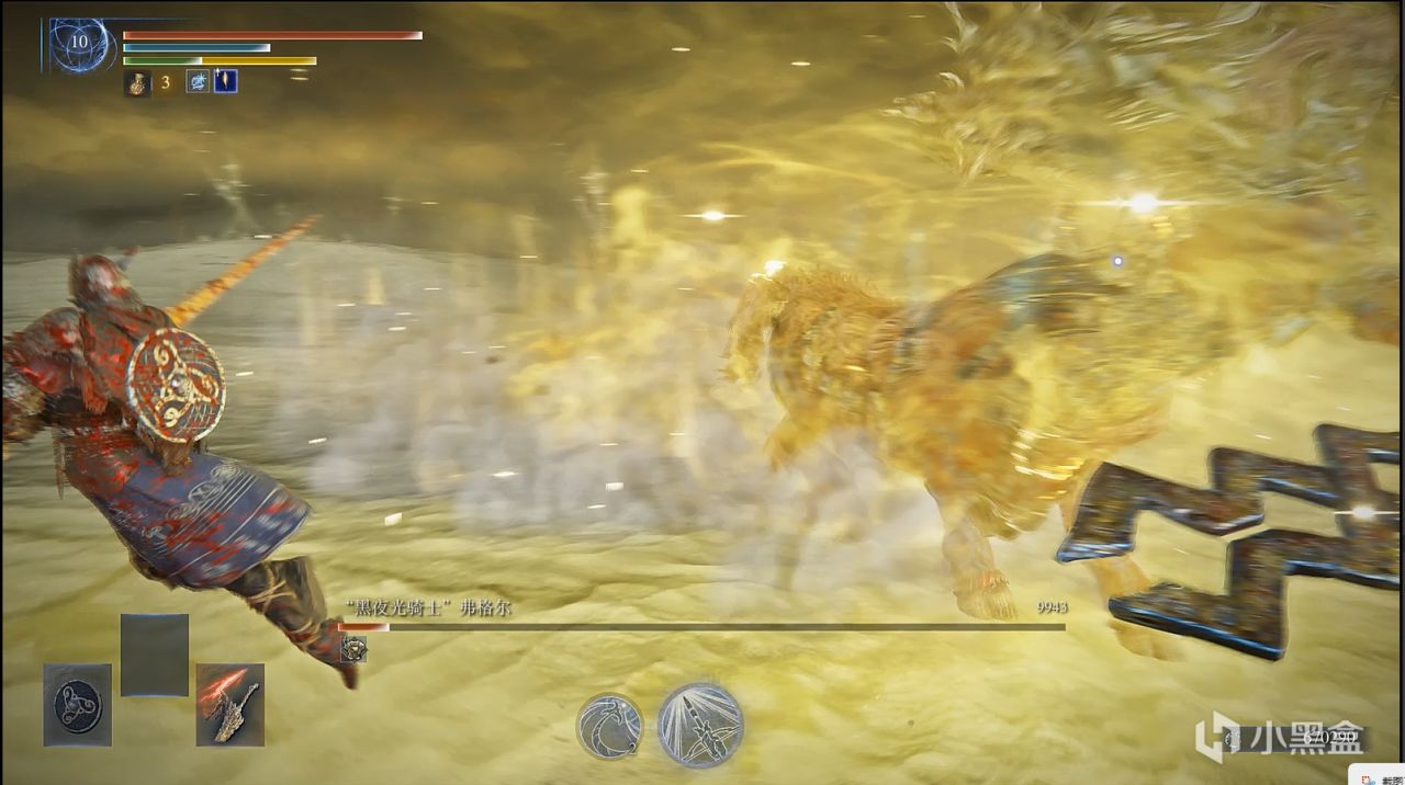 躍起下砸,這招真的很帶勁,好像我是人馬一樣,招式的前搖提示非常明顯,既有畫面,又有人馬的“喲呀”的聲音,看人馬在最高點要落下時翻滾即可