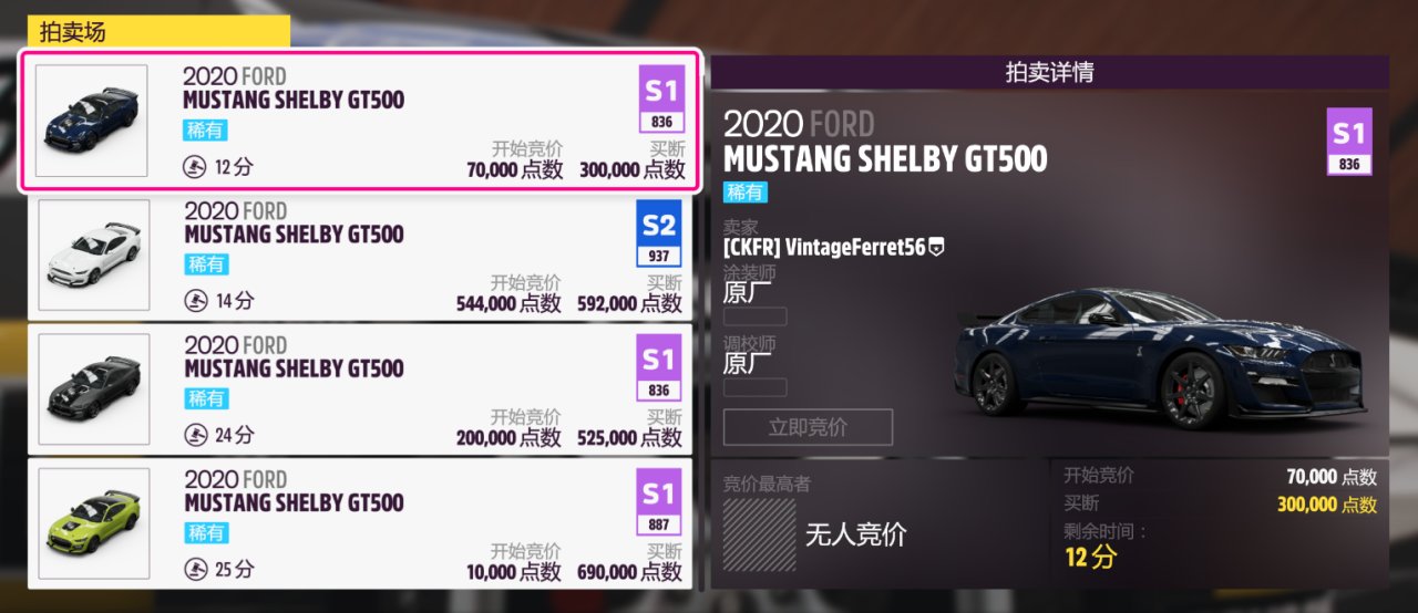 奖励车辆为:2020款FORD MUSTANG SHELBY GT500