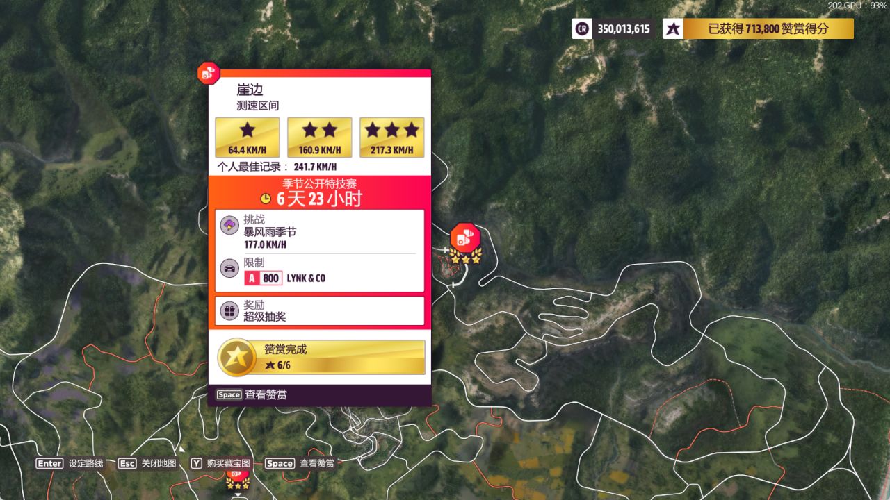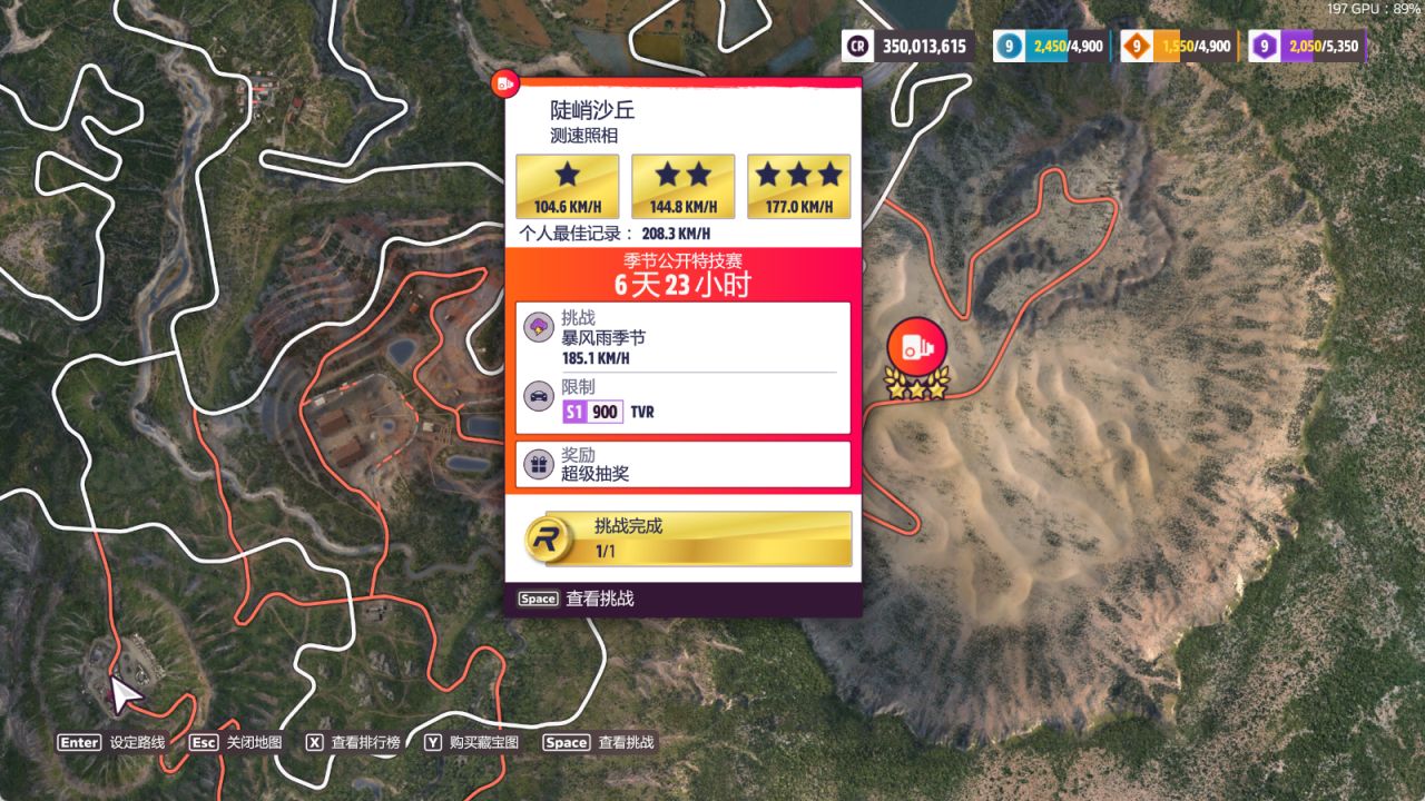 测速区间:崖边,完成奖励为超级抽奖(完成条件:177km/h)