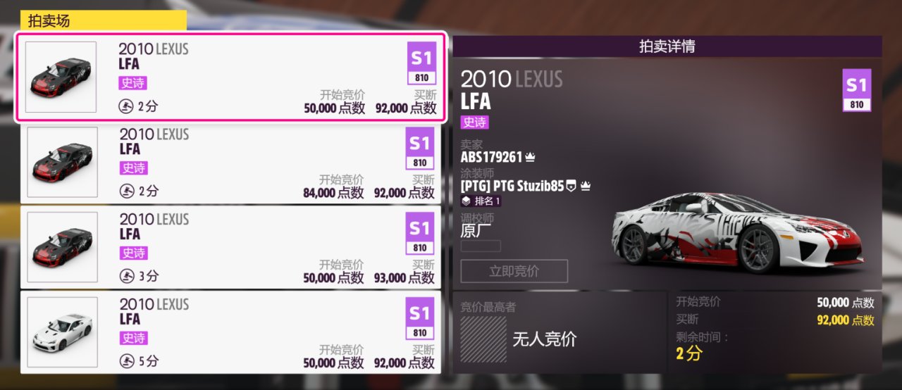 指定车辆为2010款LEXUS LFA(蛇头奖励车,车展)