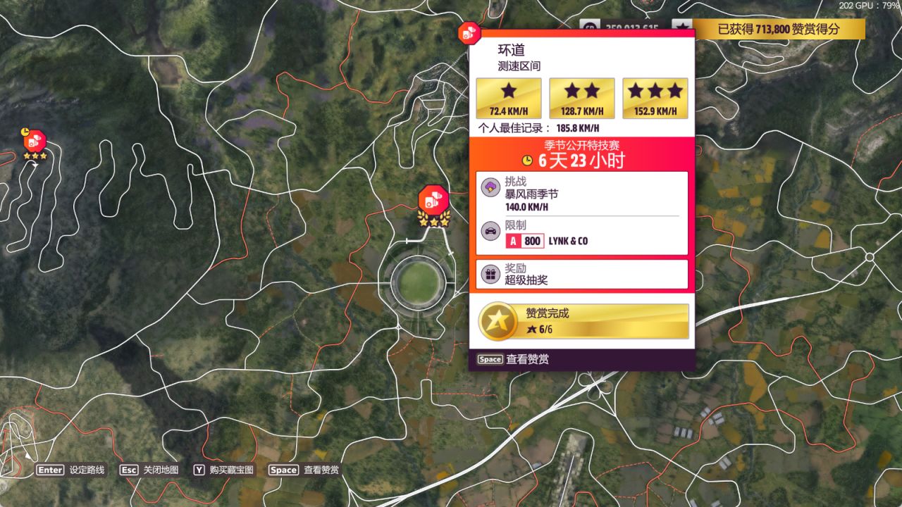 测速区间:环道,完成奖励为超级抽奖(完成条件:140km/h)