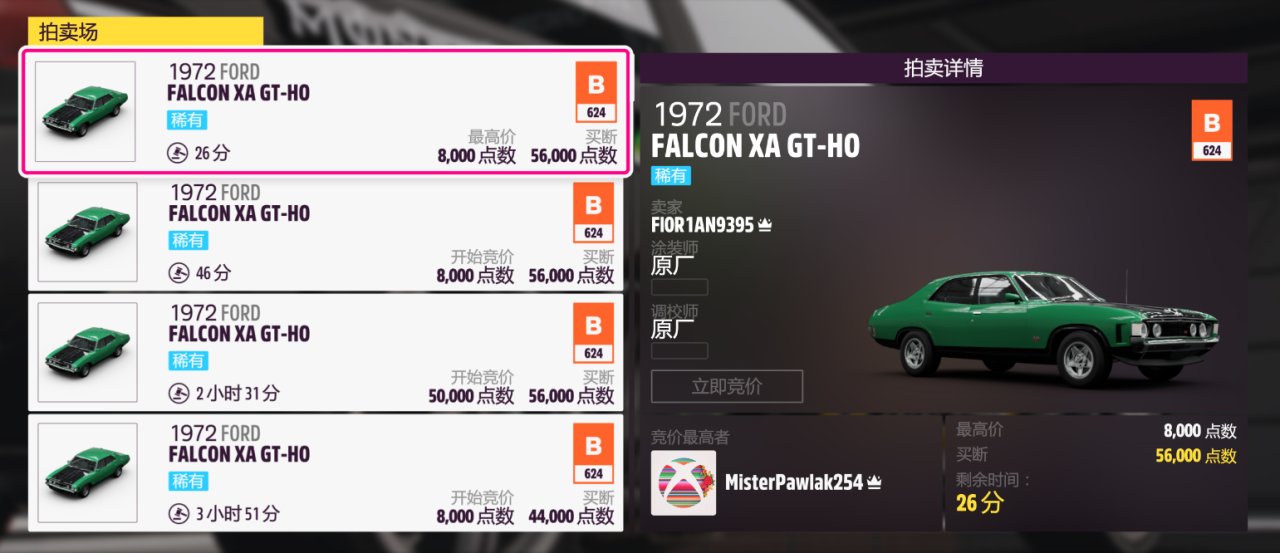 奖励车辆为:1972款FORD FALCON XA GT-HO
