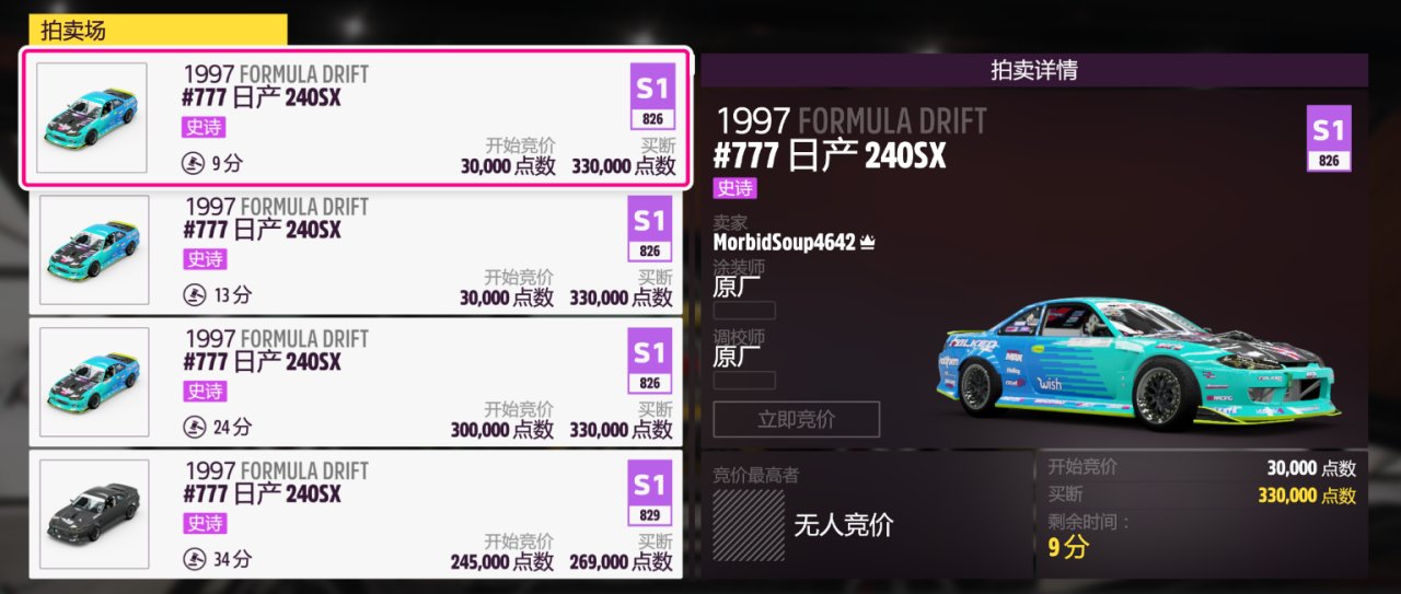 奖励车辆为:1997款FORMULA DRIFT #777 日产 240SX