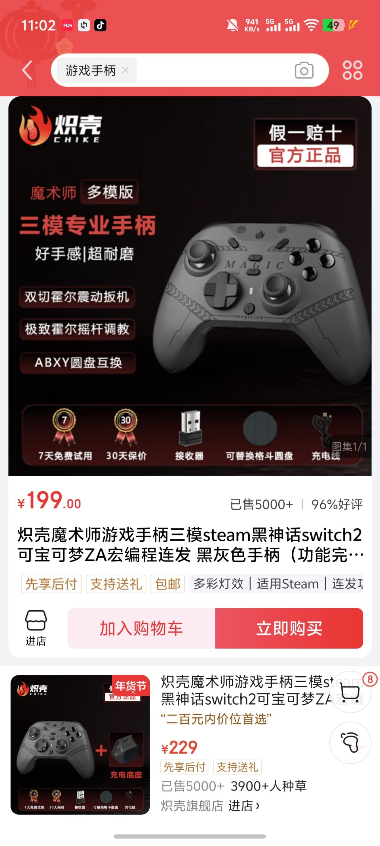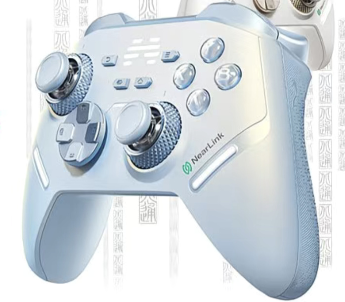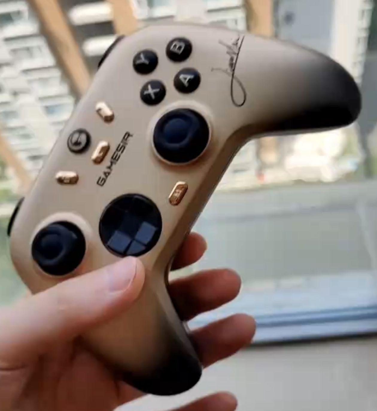 99元(價格都是大概,具體價格可以去淘寶上找找,錯了別打我,推薦太多了記差了也有可能)光是TMR遙感加上扳機震動這兩個標籤,放在這個價位就很炸裂。這個手柄拿上手其實第一感覺會覺得這些按鍵排布有些過於密集,加上這個跟平面一樣的外觀,說直白點就是不太美觀。但插上接收器打開手柄一用,還真別說,用的還挺不錯的,甚至因爲使用體驗很好,還越看他越覺得順眼。握把處做了更飽滿的模具設計,所以握感非常好。手指會很自然的放在這個背鍵組,背鍵的按壓和反饋體驗也很不錯。遙感確實能夠提供相較霍爾和碳膜遙感更高的精度與壽命,實測下來回報率和分辨率的表現也很不錯,沒有虛報。扳機震動體驗以Xbox手柄十分來說,我給他打個七分也是沒問題的。但是雖然支持多模連接,背部還有一個NS連接模式的切換鍵,但卻沒有體感陀螺儀,那還是有點遺憾的。
