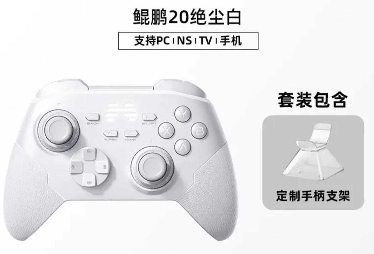 帶底座的版本售價249元,不帶底座199元。這個我個人用了蠻久,所以買回來我就非常喜歡。在當時來看,它確實是一款非常優秀的產品,顏值高,質感強,振動優秀,雙背鍵觸發輕鬆好按,搖桿打磨細緻入微,十字鍵體驗在當時也相當頂級。冰原狼4遙感無極調節,徹底下放,扳機鍵支持雙切微動手感頂級。轉軸十字鍵依舊優秀,背鍵觸發輕鬆,扳機震動表現優秀。六軸體感,帶底座也同樣支持智能啓動。
