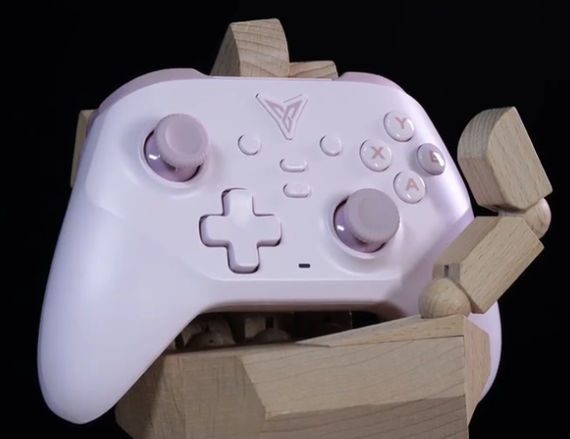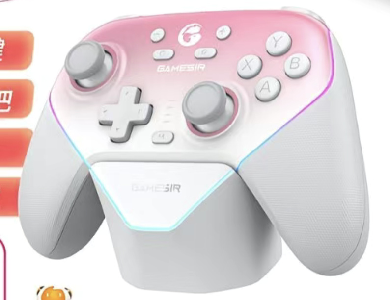 售價167元,有猛男粉配色。手柄正面有兩條燈帶,右搖桿還做了一圈RGB,打開燈光之後確實還是蠻有特點的。SYBA鍵給到了微動按鍵,手感很頂級,支持連接NS以及一鍵喚醒,而且支持體感輔助瞄準。除了握把的防滑紋理做的有些割手以及這個尖尖的按鍵聲有點大之外,同樣是一款沒啥確定的產品,對外觀感冒的話可以考慮。