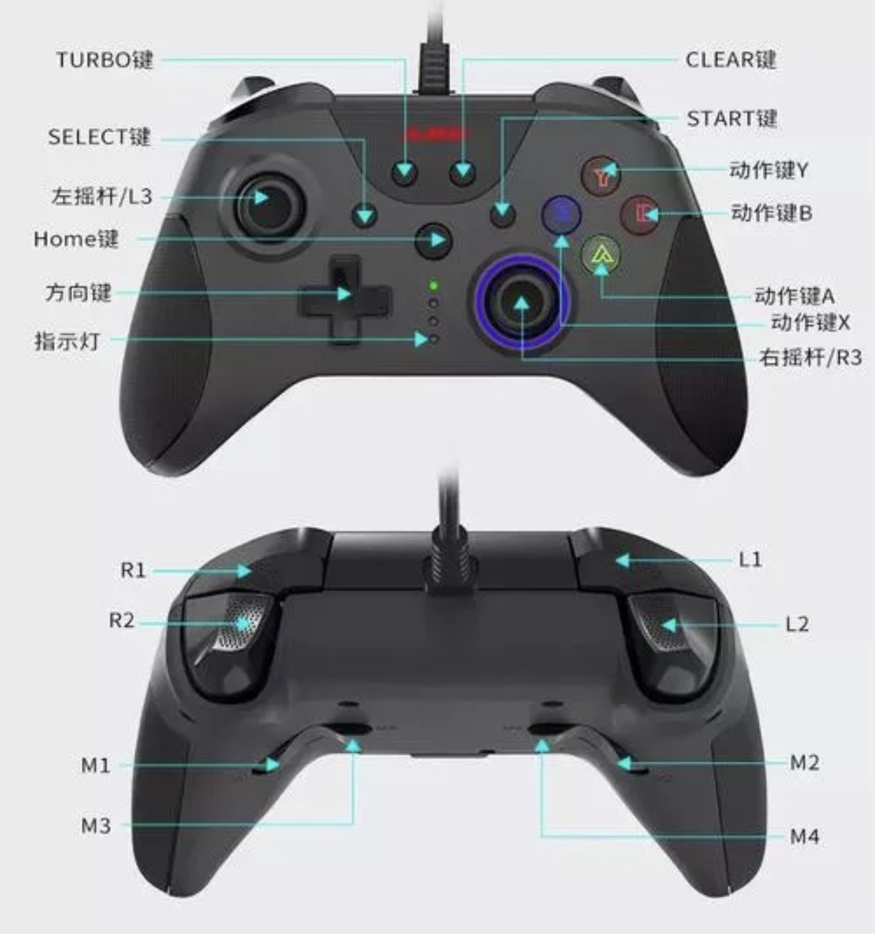 拓展按鍵(背鍵):很多手柄會在背面和上方加上這麼幾個按鍵,比如精英二代的四個撥片,致動前面多出來的兩個按鍵,以及飛智的八爪魚5、北通鯤鵬