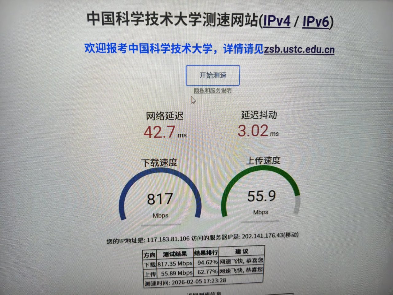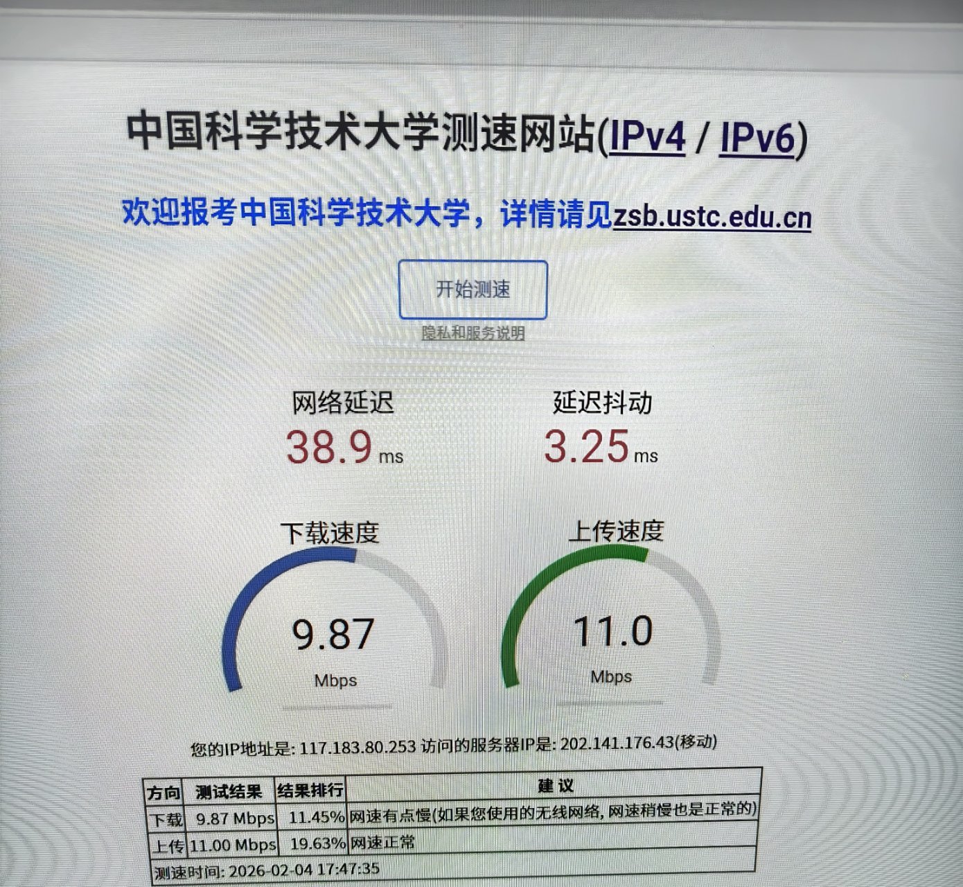 1.使用瀏覽器搜索中國科學技術大學測速網站