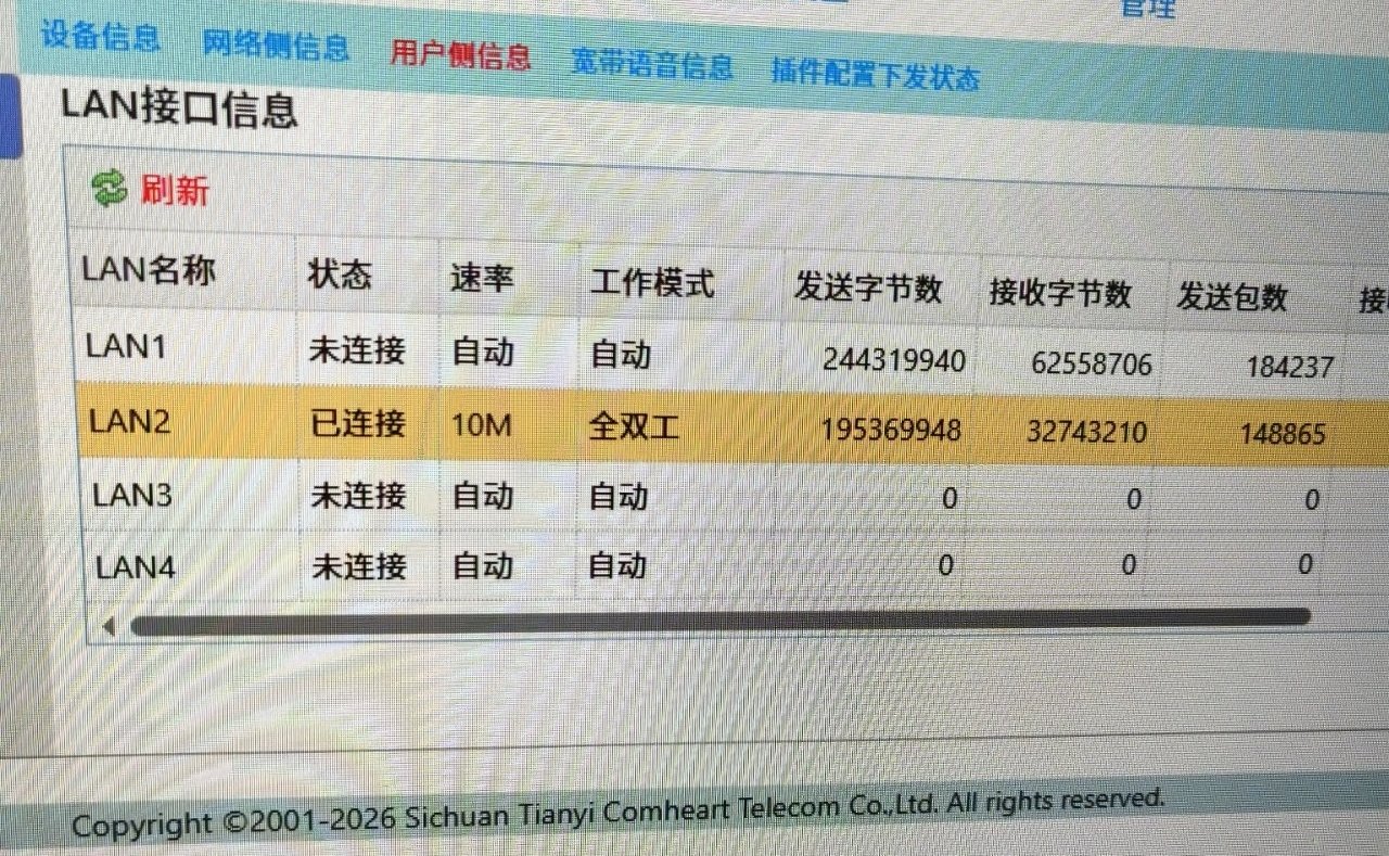 3.打開光貓或路由器後臺查看分配網速