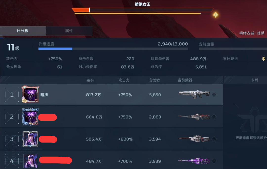 打炼狱就跟玩一样,我个人觉得女王比蛇神好打多了,我甚至觉得她很多技能输出还没Z博士高,纯白技能一开硬抗无数下。