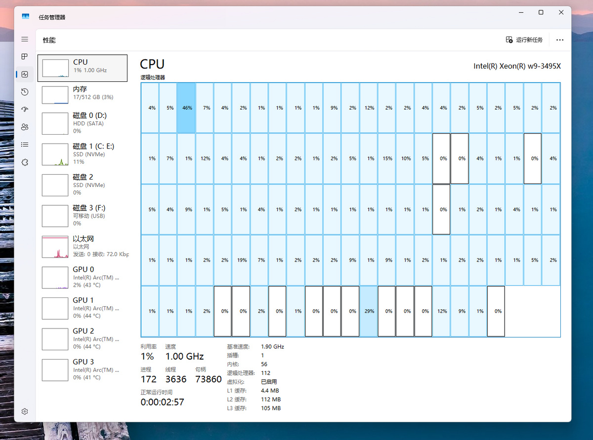 爲了釋放4個Intel Arc Pro B60 GPU全部性能,我們使用了一塊Intel Xeon W9-3495X搭配W790芯片組主板。