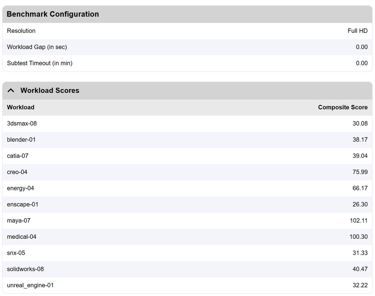 Viewperf v15 是 SPEC.org 2015 年發佈的最新版工作站圖形基準測試套件,包含了 Vulkan、D3D12、OpenGL 等多種 API 的工作站圖形負載軌跡,新增了多個項目,例如 Blender、Unreal 遊戲引擎、Enscape 建築可視化實時光線追蹤,傳統的 3ds Max、CATIA、Creo、Maya、SolidWorks 等工作站應用圖形軌跡也得到了更新。