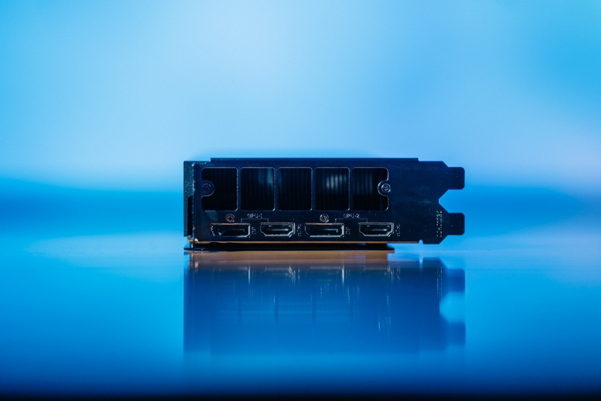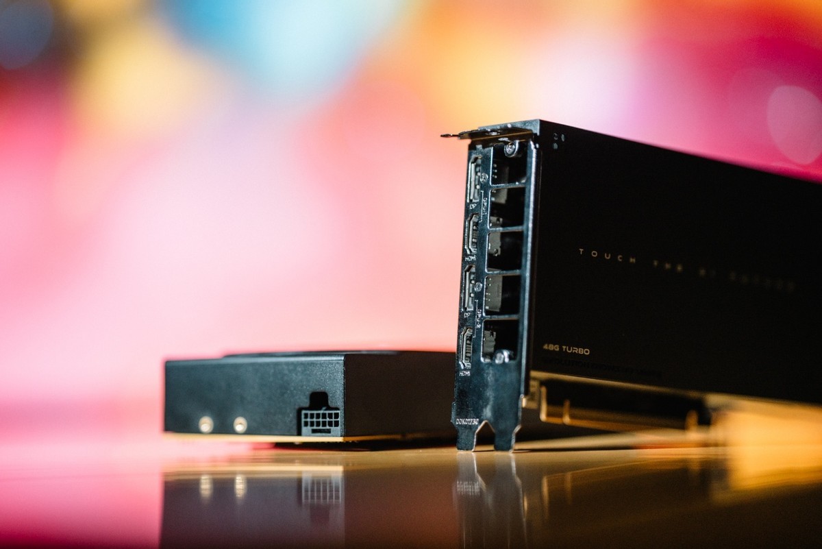 顯示輸出方面提供了兩個 DP 2.1 UHBR20 和兩個 HDMI 2.1a,可以滿足工作站顯示輸出需求,單根線纜就能提供 8K60Hz HDR 顯示輸出或者同時驅動三臺 4K60 HDR 顯示器。