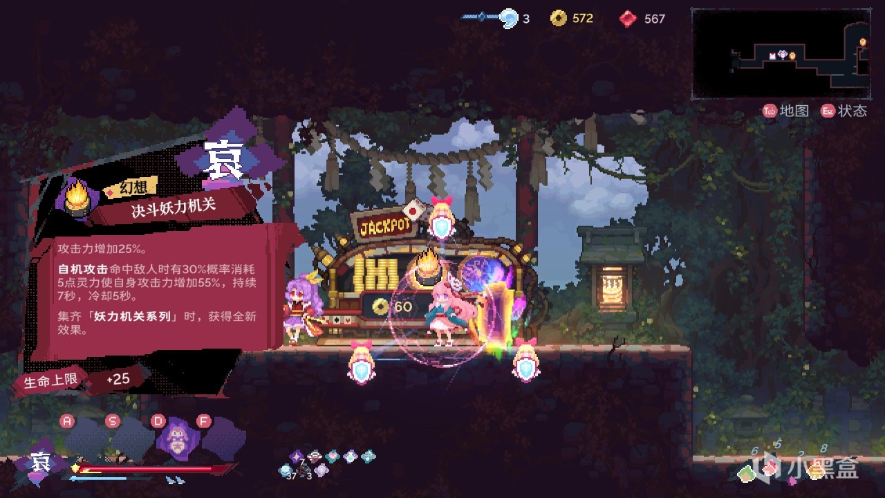 目前游戏只有两章,游戏时长大概在45分钟左右,两章的喜怒哀乐分别对应8个boss,首次击败boss可以观看其回忆,对于不怎么了解东方的我来说不是很懂,但对于东方厨来说应该很有感触吧。虽然《东方华心传》现在是EA阶段,但是游戏内有多达数十种技能和上百种道具,最近几天官方更新的非常频繁,每次打开游戏都要更新一次,把开头我说的通关之后才找到新手教程给优化到了关卡内。
