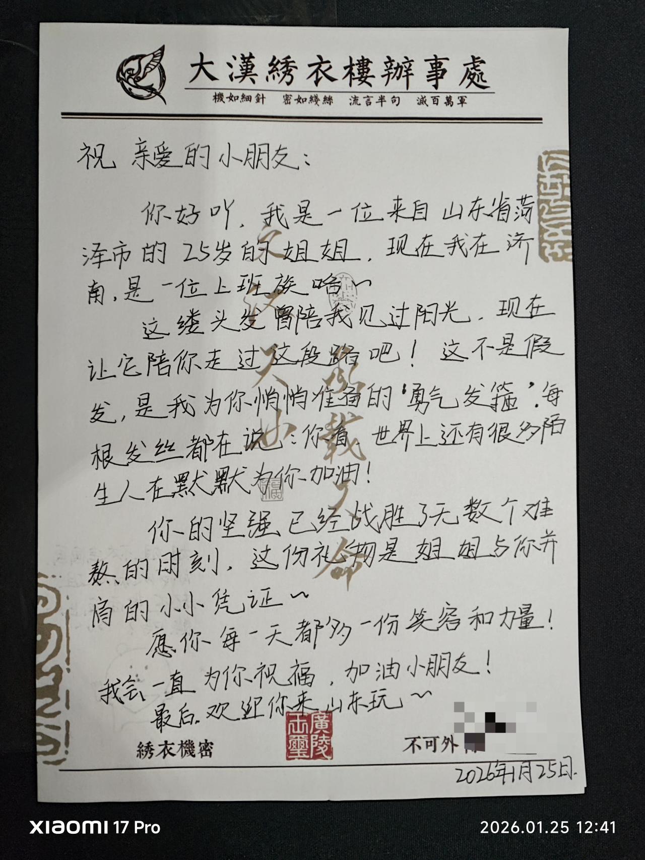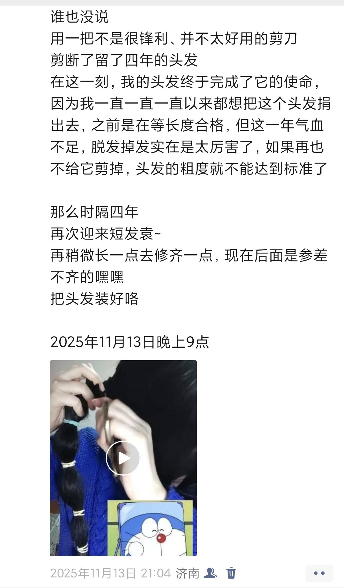 希望我的头发能给患者小朋友们带来温暖,希望能做成漂亮的假发给她们~一位小朋友能戴上它,在病房的镜子前露出笑容,这就是我做这件事全部的、最好的意义🥰。