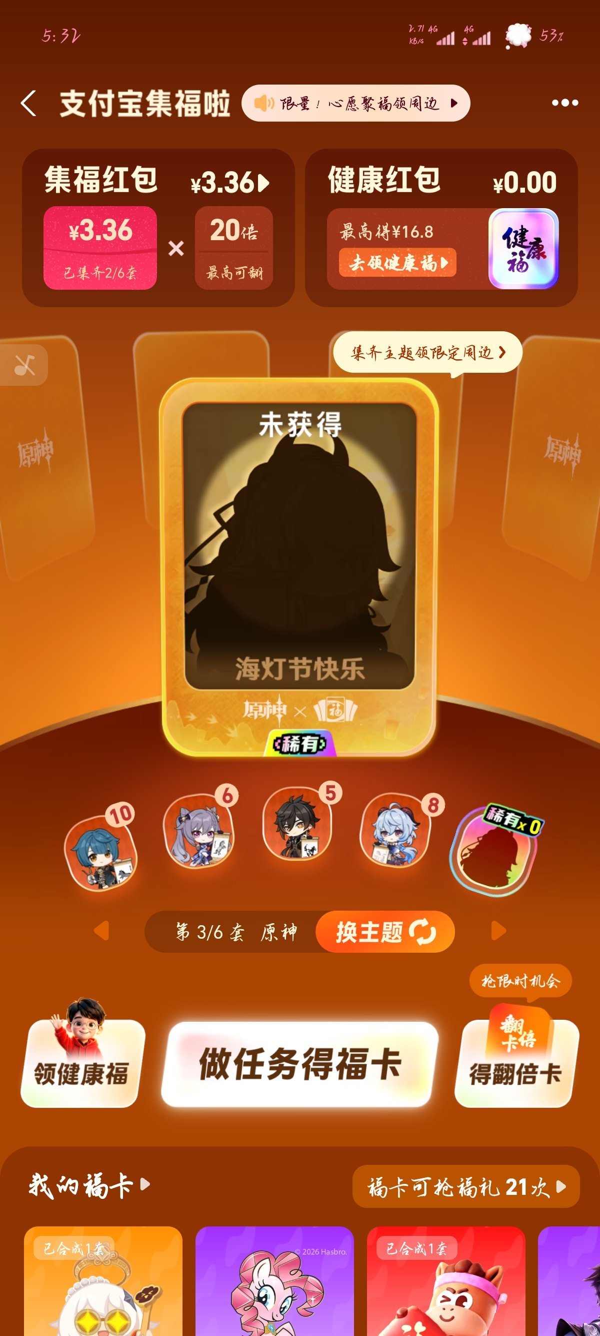 第二步,选择集福卡,并且选择原神主题