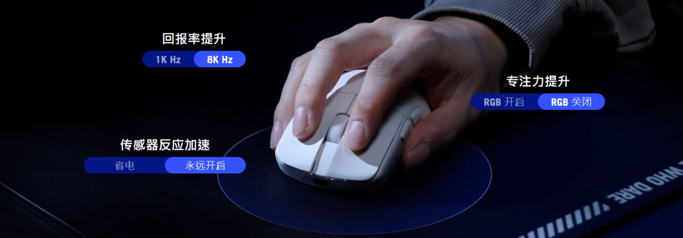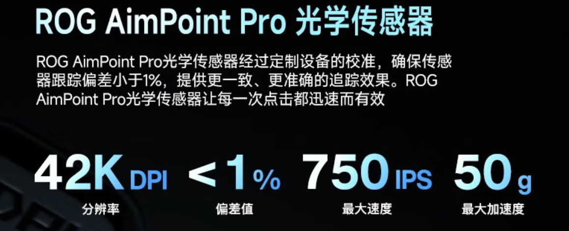 传感器:升级到AimPoint Pro,42000 DPI,加强了对玻璃垫的支持