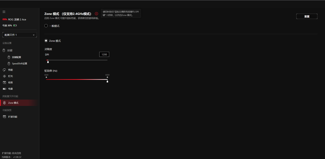 还有个 “Zone”竞技模式,开启后会将轮询率锁定在4000-8000Hz,全力压榨性能(代价是关灯、增加功耗)。