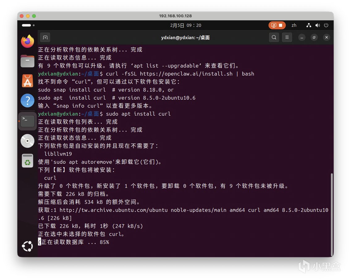 Linux Station用習慣,忘記虛擬機還要我們手動安裝下 curl 工具。根據提示,輸入命令更新下即可。