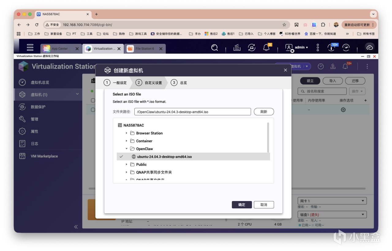 文件位置這裏,我單獨創建了一個共享文件夾「OpenClaw」。另外把上面下載的系統鏡像文件也放在了這裏。