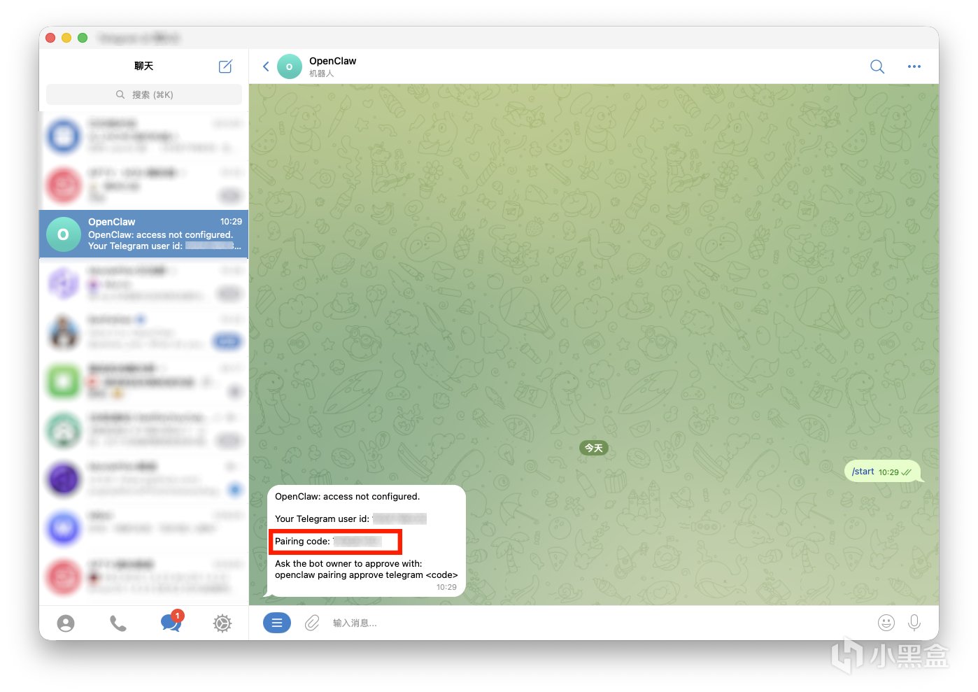 如果你直接進行對話,會首先返回配對碼,不會觸發其他響應,這是因爲還沒有配對。配對碼就是紅框標註的code。
