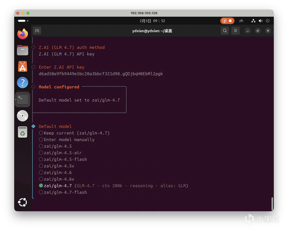 接着是AI的選擇。上文準備了智普大模型,而贈送的額度是能夠使用GLM 4.7的,我們移動並選擇,如下圖所示。