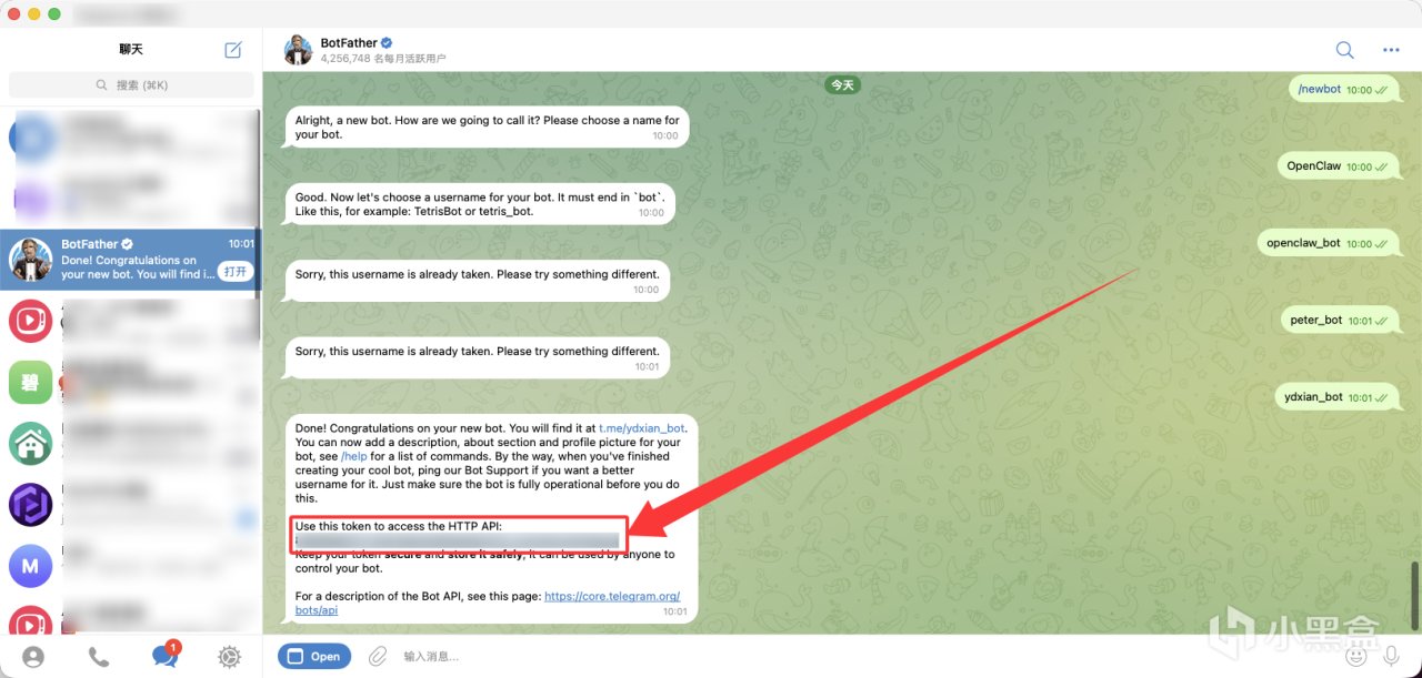 我們切換到紙飛機,和@BotFather對話,如下圖輸入指令,創建一個Bot,並獲得 API。