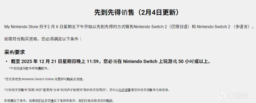 不过想买也不是没条件,账号里初代 Switch 的累计游戏时间得够 50 小时才行。