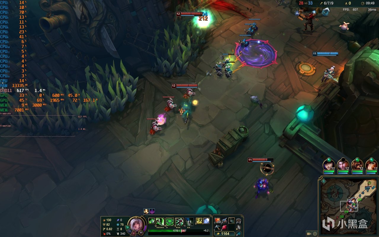 ▼日常團戰情況,遊戲幀數也能保持在617幀左右,非常流暢。