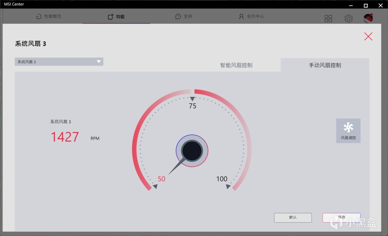 ▼冷排風扇的轉速設置在50%,這個檔位幾乎聽不到風扇轉動的聲音,75%的時候可以聽到風扇聲音。