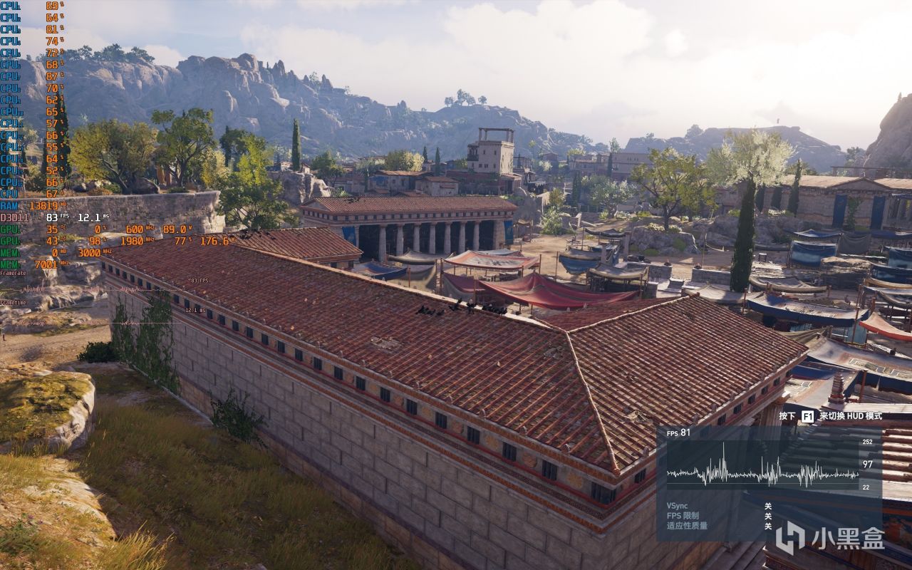 ▼室外整體的遊戲幀數在83幀左右,顯卡佔用98%。