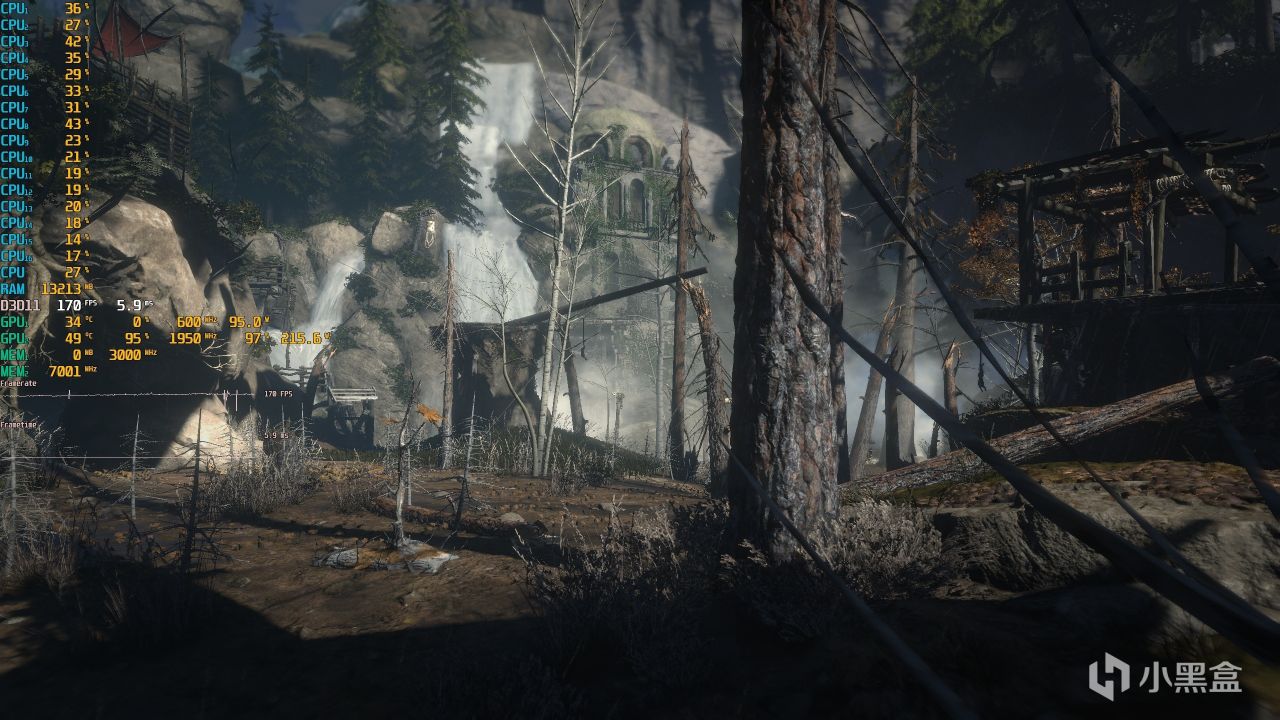 ▼第三個測試場景,遊戲幀數在170幀左右,顯卡佔用在95%左右。