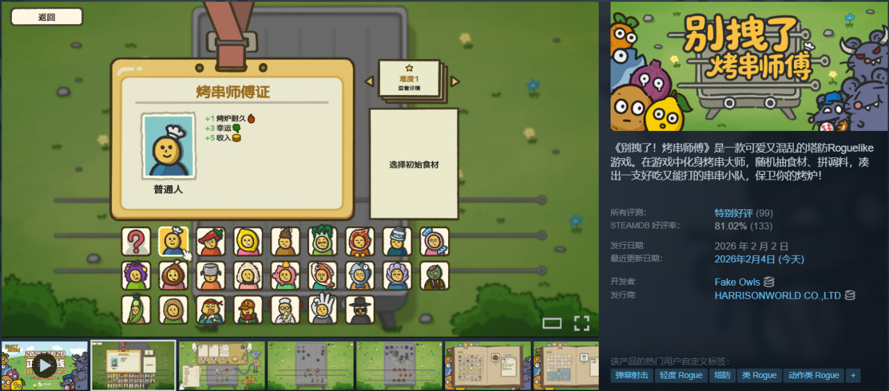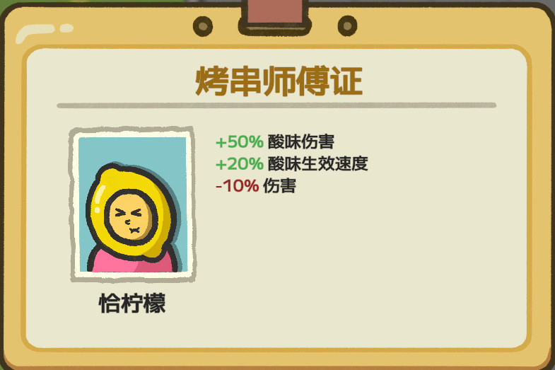 可以選擇不同的燒烤師傅,師傅們有各自屬性。比如“恰檸檬”有酸味傷害加成