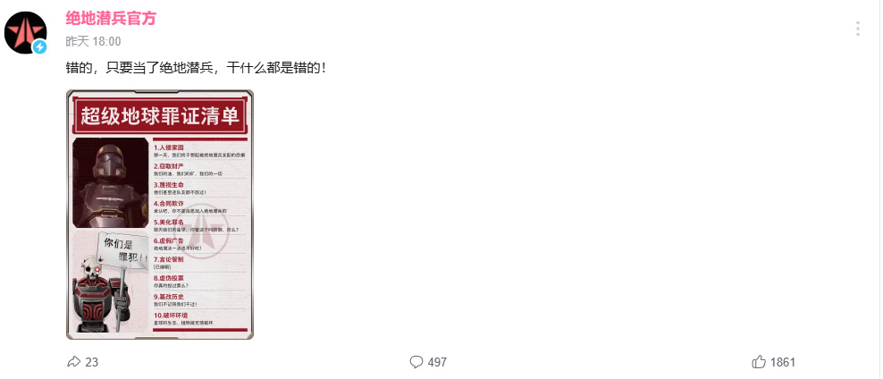 自2月5號開始的駭入行動似乎並未停止,2月6日這天多個社交平臺的絕地潛兵官方賬號仍舊持續發佈一連串令人迷惑的發言。