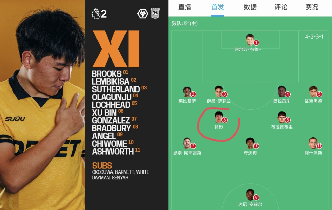 此前的1月30日,英超狼队官宣国足U23队长、21岁中场徐彬以自由身转会加盟。