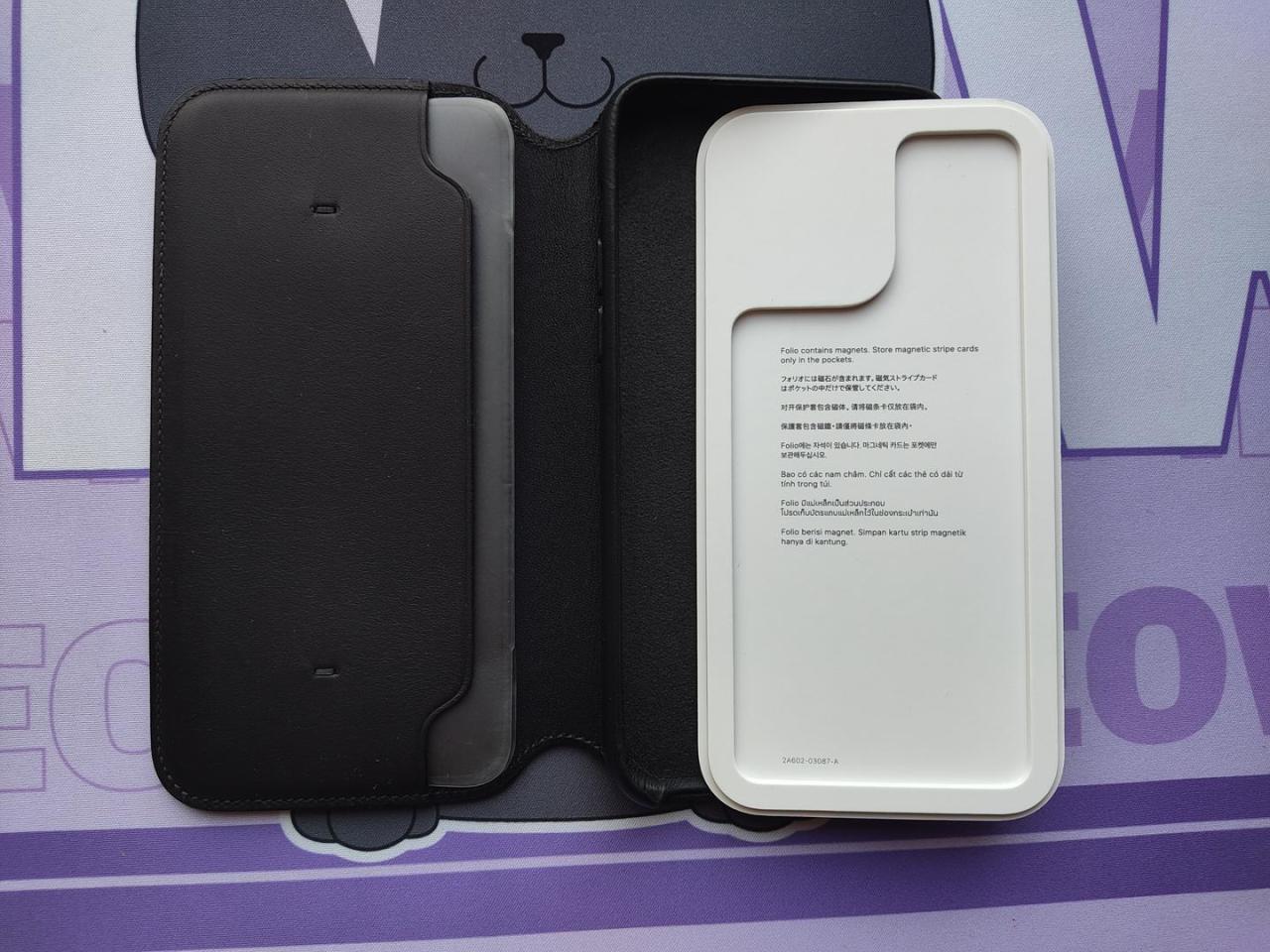 得益于翻盖保护套的设计较为复杂,苹果对包装也进行了相应调整,拿出手机壳后,内有手机壳如何安装和皮夹功能的介绍简图